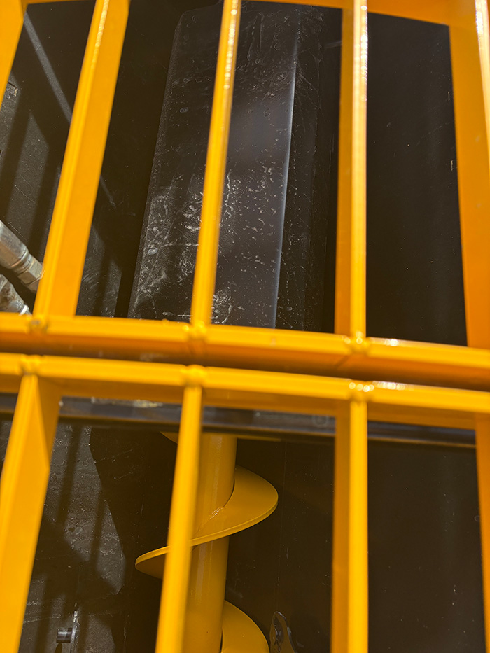 The Mega Mixer includes two 2′ multi-link chutes that store conveniently on the bucket. Additional chutes are available with chain mounting holes for stronger support. A closable discharge end limits spilling and allows for faster material mixing.