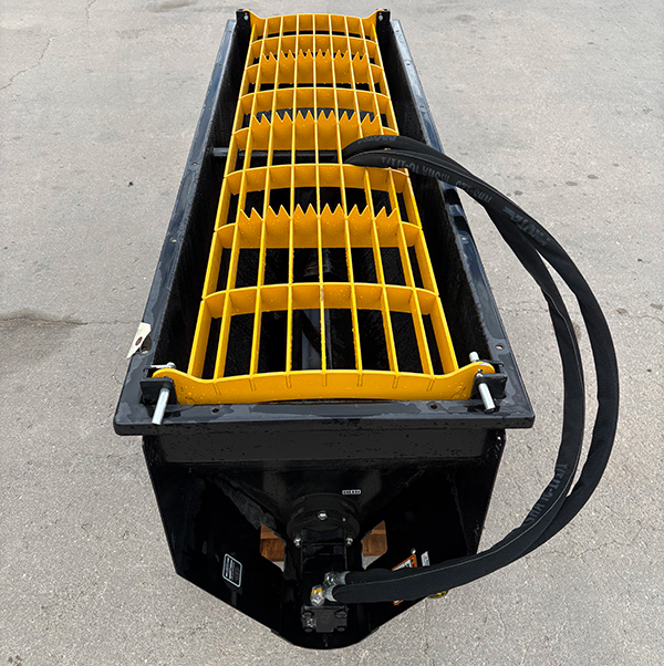 With a 1/2 yard base capacity (13.5 cubic ft.), and a 3/4 yard extended capacity (20 cubic ft.), the MAC Bucket replaces the manual labor of moving and mixing materials and is perfect for tight conditions where larger equipment is not ideal. This mixing and conveying (MAC) bucket features a skid-steer quick attach mount on both sides of the bucket, which allows for discharge from both the left and right sides. It is designed with no discharge gate and with the ability to self-load from loose piles, making the MAC Bucket a true one-person operation. All buckets come standard with two (2) multi-linked chutes (24″ long) and two (2) 7′ long hoses with flush-faced couplers (ISO 16028).Â