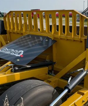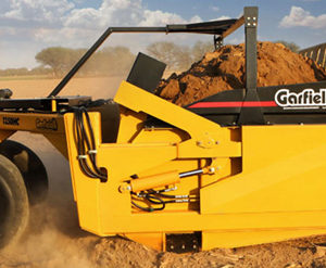 When you need to move a lot of material, the Garfield Ejection Scraper is the right machine for the job. The Garfield Ejection Scraper comes standard with hydraulically-operated rear gates using forward-forced straight ejection to achieve a smooth, even spread of material at the desired depth. The rear hinge design allows the bowl to set on the ground when loading, this makes loading require less horsepower than a traditional front hinge scraper. Optional Laser/gps mount, as well as tandem hitch, are available for all models.