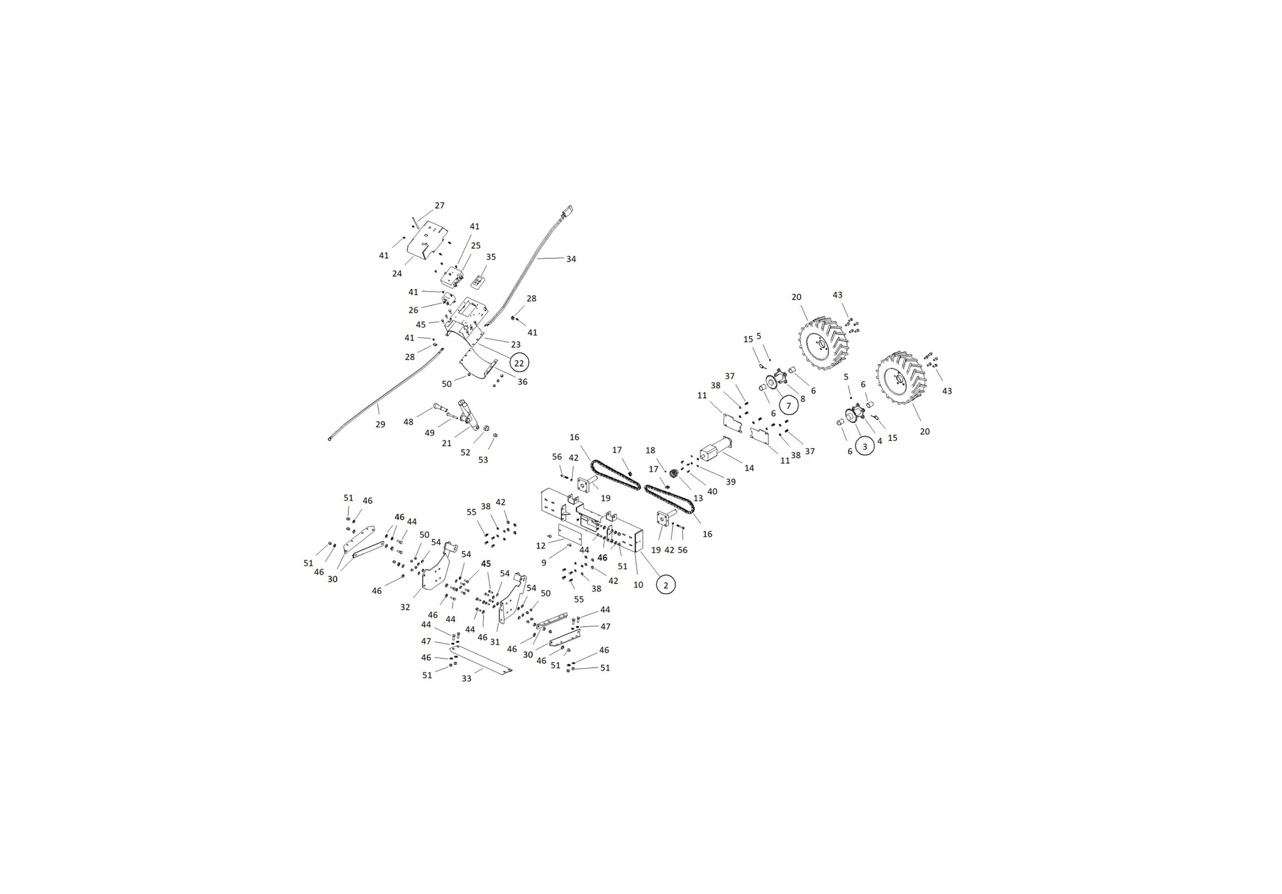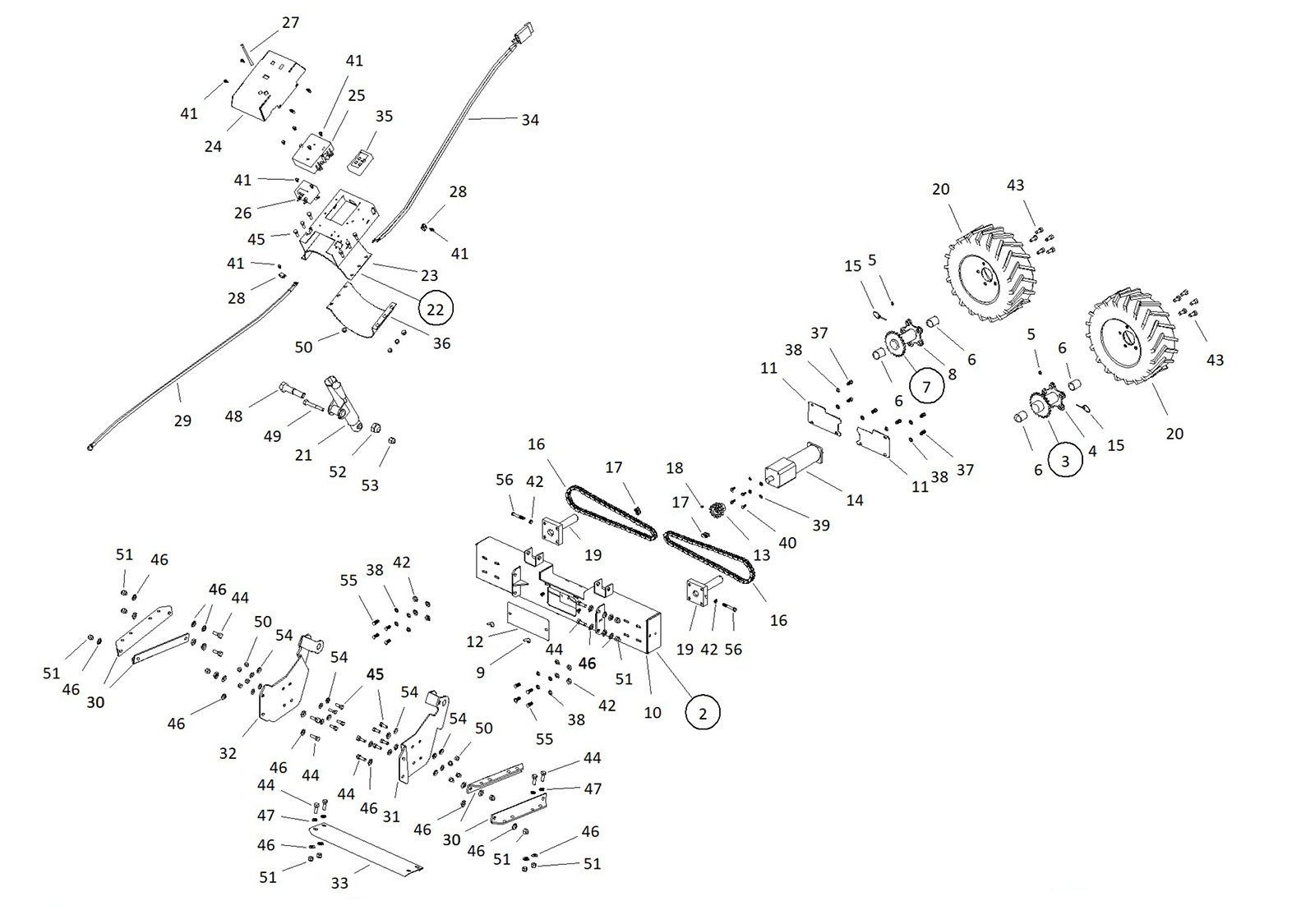 - Two wheel drive design and large lug tires for maximum traction and balance