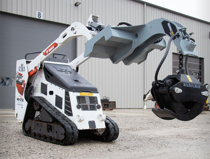 Baumalight Log Grapple | Bobcat MT Mini Skid | 12-45 HP | 5-20 GPM | Opens 39.65″ | Chain Rotation