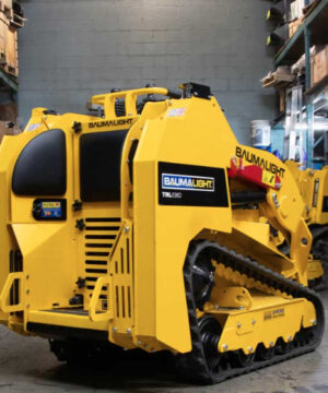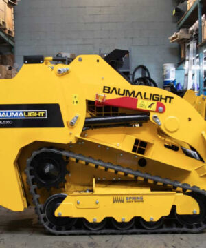 Manufactured in Ontario Canada, the TRL536D stand-on compact Utility Track Loader is designed to easily navigate through tight spaces. Notably, with a width of 36 inches, it ensures easy access to even the most confined areas and good productivity on the tools powered with a Kubota diesel engine. Like the big skidsteers, the hydrostatic drive is configured with real joystick controls and hydraulic pilot lines. The unit ships with narrow tracks but wide tracks can be installed for less ground compaction if desired and the Baumalight all-metal frame compact track loader also has a floating smooth riding raised platform for better sight when navigating through tight spaces.