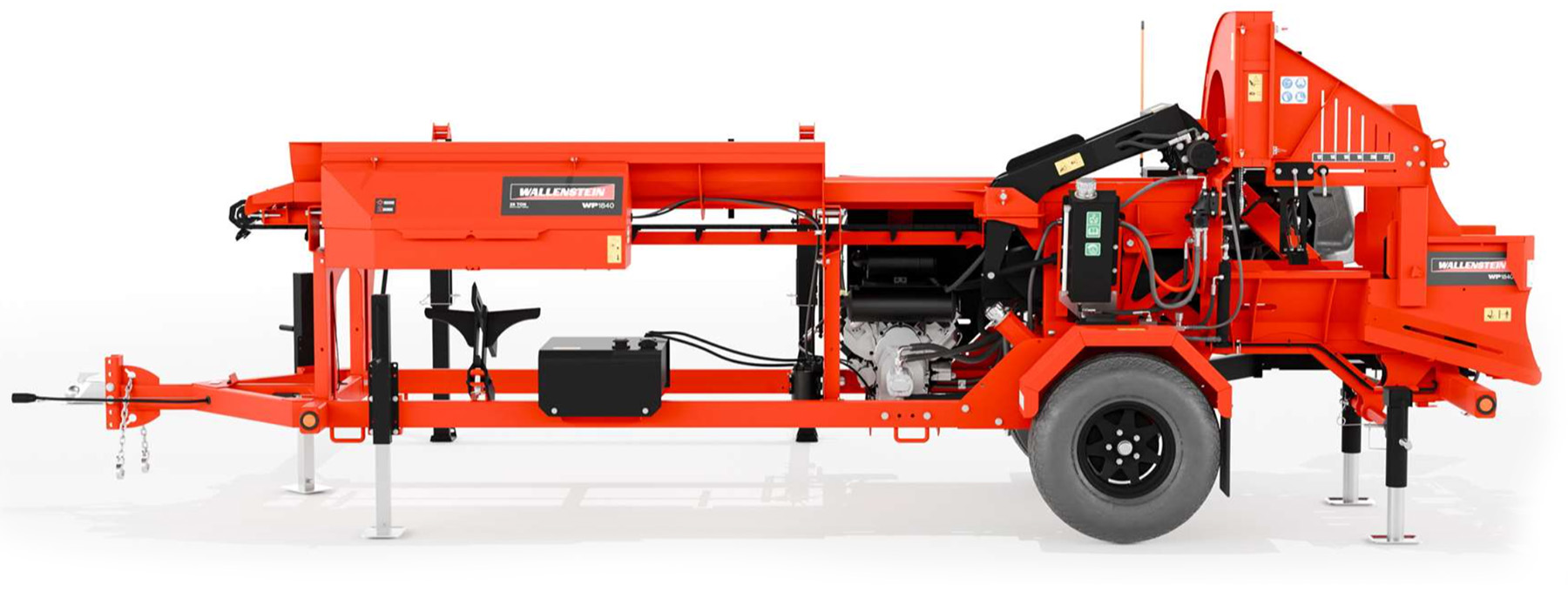 Wallenstein WP1840 Wood Processor | Trailer | 20 Ton | 40 HP Vanguard | Opens 26″ | Live Deck Infeed
